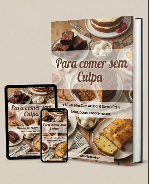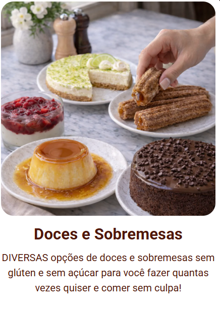 Mais de 50 receitas de bolos, doces e sobremesas 100% sem açúcar e sem glúten — para você comer com prazer, leveza e zero culpa.